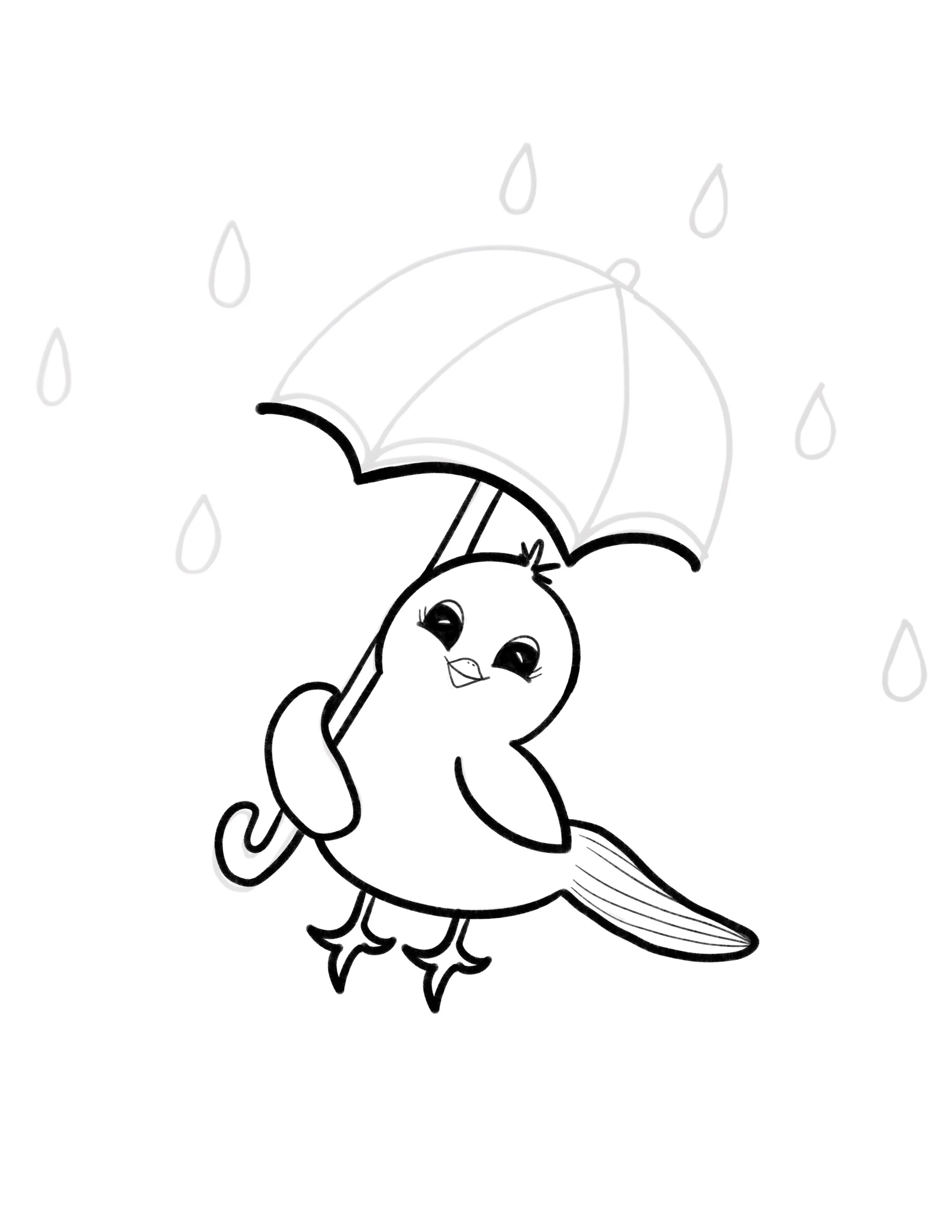 I hope you had fun following this easy tutorial to draw your very own bird keeping dry with its umbrella.